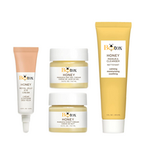 Details: Honey is a natural humectant known to retain and preserve skin's moisture. This kit includes a Honey cleanser, Manuka Honey Day Cream, Manuka Honey Night Cream and Royal Jelly Eye Cream. This kit features Manuka Honey and Royal Jelly to moisturize, calm and sooth skin. Calming, Moisturizing, Soothing.